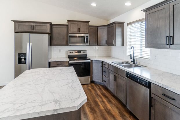 Welcome to luxurious living duplex located in the heart of Cheney Washington. Step inside to discover a modern and spacious home with luxury vinyl plank (LVP) flooring throughout, creating a sleek and low-maintenance living space. The open layout seamlessly integrates the kitchen, family room, and dining area, providing the perfect setting for entertaining. The kitchen features quartz countertops, a kitchen island, stainless steel appliances, a pantry, garbage disposal, and ample cabinet space for all your needs. Each bathroom boasts quartz countertops and a full tub and shower and a linen closet for convenience. The bedrooms are designed for functionality, with large closets for storage and large windows that flood the rooms with natural light. The primary bedroom includes a spacious walk-in closet with extra shelving and an ensuite bathroom with jack and jill sinks. Additionally, you'll appreciate the convenience of the laundry room, complete with a farmhouse sink. Outside, enjoy the backyard and back deck. Take advantage of the spacious attached two-car garage, providing secure parking and additional storage space.
