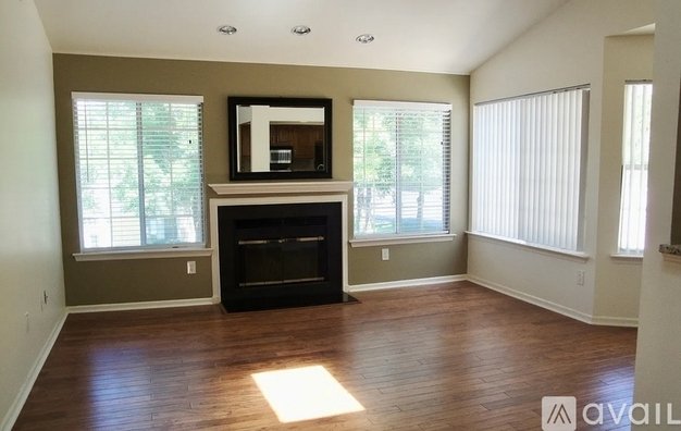 Open concept living room with high ceiling and wood burning fireplace. The master bedroom features full bath, dressing area with second sink and walk in closet. Stackable washer and dryer in unit. A large deck/patio is outside your front door.