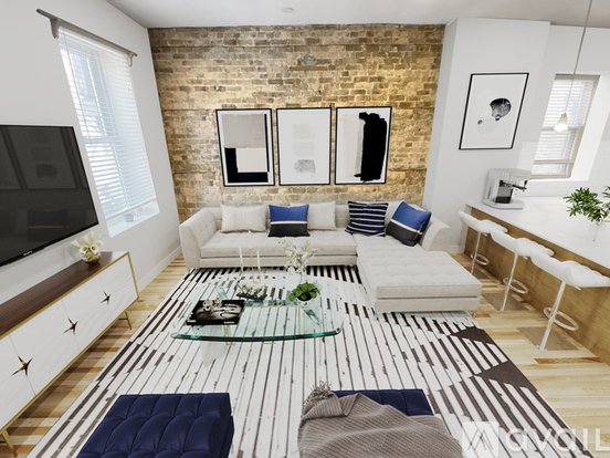 - unique exposed brick wall in living room