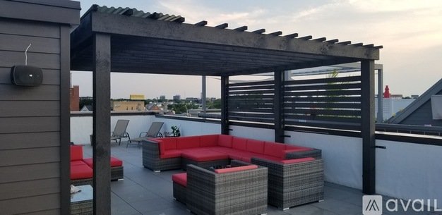 Newer stunning penthouse 3-bedroom apartment for rent in Roscoe Village, Chicago. With a sleek design, the unit features interior stairs to your private rooftop deck with a pergola and furniture- this spacious rental apartment boasts a gorgeous kitchen with custom cabinetry, high-quality appliances, and quartz countertops.