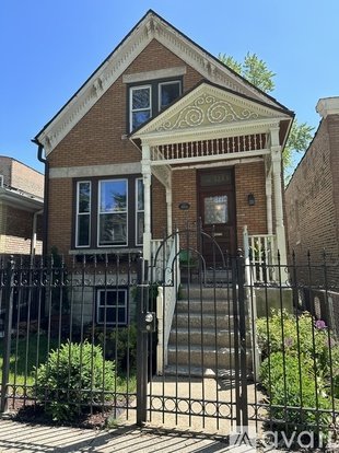 Includes shared backyard with brick patio (patio furniture included), green space, perennial garden, and raised beds for planting. Raspberries and strawberries already growing! Front Victorian-style porch with sitting space and gated front yard with more green space and perennial landscaping. A half block from Humboldt Park and 3 blocks from the 606 trail. A safe block with many long-standing homeowners/occupants.