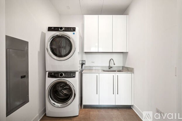 Stunning 3 bed, 3 bath home in the highly desired Renelle on the River! This open-concept floor plan offers a large living room and chef's kitchen featuring custom Snaidero cabinetry, integrated Sub-Zero, Wolf appliances, and a massive island. Enjoy the abundance of natural light and beautiful city views throughout the home from the floor-to-ceiling windows with automatic window treatments. The home includes a laundry room with sink and extra storage, abundant closet space and a private terrace. The primary suite features a large walk-in closet, and a luxury bath with a free-standing soaking tub, dual vanity, enclosed commode, and a frameless glass-enclosed shower. Two additional spacious bedrooms round out the versatile floor plan. This full amenity River North building includes 24-hour door staff, top of the line fitness center with a private yoga room, bicycle storage, and a dog run. The well-appointed amenity level features a private rooftop lounge with game room, media room, indoor/outdoor kitchens, and an outdoor terrace set against magnificent views of the Chicago skyline and river. Indoor garage parking for an additonal $250.