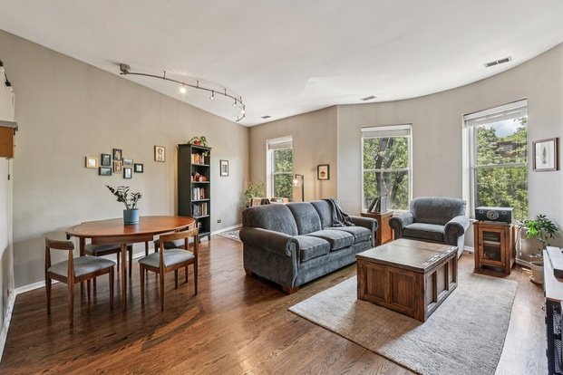 A beautifully updated, large one-bedroom condo nestled on the quiet, tree-lined Cornelia Avenue in Lakeview East. This top-floor unit in a vintage six-flat building faces south, filling the space with abundant natural light. As you enter, you'll find an open and vibrant living and dining area with gorgeous hardwood floors throughout. The living room features a charming bay window, and the dining area offers flexible configurations, perfect for a home office nook. There's plenty of space to entertain or simply relax at home. The updated kitchen, boasts painted cabinetry, quartz countertops, and stainless steel appliances. A true highlight of this unit is the in-unit laundry, conveniently located in the hallway. The bathroom has also been updated with porcelain tile floors, newer fixtures, vanity, and built-in towel storage. The primary bedroom is generously sized, comfortably accommodating a king-sized bed, and includes a large closet. It also features a versatile nook, ideal for a home office or mudroom, located off the back door. This unit also comes equipped with a large storage locker in the basement. This unit offers modern comfort with central air conditioning. There is also a shared yard in the rear of the building. The location is truly unbeatable, offering easy access to: Restaurants, nightlife, and festivals in North Halsted/Lakeview East, the lakefront, CTA, Addison Red Line is just a few blocks away