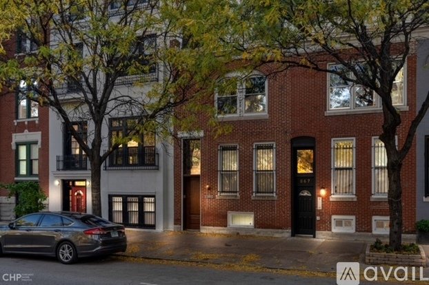 Duplex up penthouse in prime Gold Coast location. Totally unique space offering a rustic, industrial vibe. When you enter the unit you are greeted by 11 ft ceilings, open spiral steps, a decorative fireplace, and large open concept kitchen. The 1st floor dining/living room space hones a decorative ceiling and large windows that fill the room with natural light. Gorgeous slate bathroom with steam shower, full size washer & dryer, and large 2nd bedroom complete the 1st level. At the top of the rustic spiral stairs you walk into a large living room with skylight that brightens the entire space. Down the hall is the main bedroom with walk in closet and updated master bathroom with glass shower & clawfoot soaking tub. The private roof deck, with amazing views of the city and shared yard, offer ample space for outdoor entertaining. Location is A++, close to public transit & surrounded by parks. Outdoor parking spot available for $200 per month. Available November 1st. Pet deposit $250