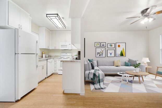 Park your car in the one-car garage and relax on the covered porch or patio, perfect for enjoying the beautiful California weather. Inside, you'll find Pergo floors and newer carpeting, adding a touch of elegance to your living space. We understand that pets are part of the family, which is why we welcome them to our community.