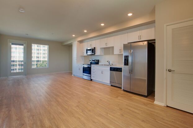 - Refined Interiors: Each studio boasts tasteful shades, warm can lighting, a full-size kitchen with ample cabinet space, and other modern amenities designed for your comfort.