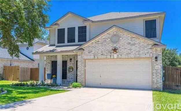 NO CARPET! All carpet has been replaced with vinyl plank flooring. This home has a fantastic layout - large open space for first living area and dining or flex space. Transition to the back of the home where you will find the kitchen, another space for dining, and the SECOND living space with a fireplace. Kitchen has new cabinets, granite countertops, stainless steel appliances. Fridge, washer and dryer included. Upstairs are the 4 bedrooms and 2 full bathrooms. Very spacious tiled, primary bathroom with dual granite countertop and a large walkin shower for two with two shower heads at opposite ends of shower. Large walkin primary closet. Secondary bathroom is tiled and has dual granite countertop and bath/shower combo. Half-bath and indoor laundry closet both downstairs. Covered patio in the back for relaxing after a long day. HVAC system 2 years old. Only 0.3 miles away from the Deer Creek POA neighborhood park. This park has a sand volleyball court, basketball court, and a playground. From the park you can walk through Deer Meadows to a baseball diamond and visit Al Rich Park. Great neighbors and the location is convenient to shopping centers, restaurants, and great schools. Zoned for Watts Elementary, Corbett Middle School and Clemens High School all in the Schertz-Cibolo-Universal ISD. Property managed by owners with 16 years of experience taking care of tenants and rental properties. Apartments(dot)com is used for applications, tenant records, and rent payments.