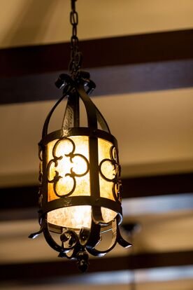 Decorative fireplaces and beamed ceilings