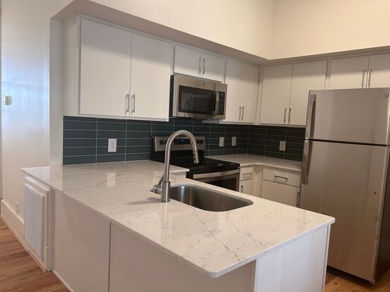 Unit #1 offers updated stainless steel appliances, hardwood floors, and exposed brick, balancing timeless character with updated finishing touches such as track lighting, stainless appliances, remote control ceiling fans, and a glass bowl sink.