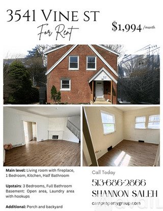 Spacious home located at 3541 Vine St, Cincinnati OH- Just minutes from the Cincinnati Zoo, highway, restaurants, and more! The main level of this home has a living room, 1 bedroom, kitchen, and a half bathroom. The upstairs has 3 additional bedrooms and a full bathroom. There is also an unfinished basement with washer/dryer hookups and a walk out door to the fenced in backyard. We also provide a resident portal to securely make payments and maintenance request! This home DOES ACCEPT HOUSING VOUCHERS! Please visit our website and contact us today!