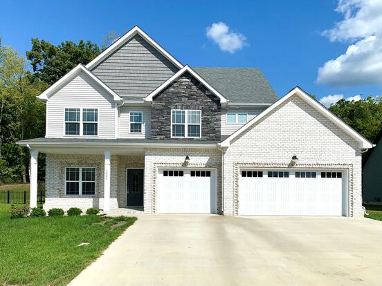 Beautiful home located in the River Chase subdivision in Sango, 30 minutes to Fort Campbell. Spacious 3 car garage, covered porch and covered rear patio. This home features a flex room off of the entry for formal dining or office. Large great room with shiplap fireplace, eating area, and kitchen. The kitchen features granite countertops, double ovens, stainless steel appliances, and large walk-in pantry. Cross into a mud room area from the garage featuring a coat closet with plenty of storage. LVP flooring throughout the downstairs with tile in the half-bath. All four bedrooms and a huge laundry room are located upstairs. All bedrooms are spacious and have walk-in closets. Master bath has a double vanity, soaking tub, and a giant tiled shower. There is also plenty of attic space for storage. Pets allowed with $300 pet fee per pet. No more than 2 pets, no vicious breeds or puppies under 12 months old.