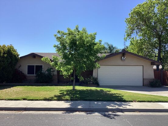 This beautifully landscaped single family home with SOLAR has approximately 1629 square feet, a living room, family room, dining area, carpet flooring throughout, tile floors, granite counters in kitchen, electric range, dishwasher, microwave, refrigerator, garbage disposal, wood burning fireplace in family, remote controlled fireplace in living room, central heat & air, ceiling fans throughout, laundry hookups in garage, 2-car garage with electric opener, front yard and beautifully landscaped HUGE backyard with automatic sprinklers, POOL with Pool service INLCUDED; covered back patio. From Willow Ave & W. Barstow Ave, Go East on W. Barstow, then turn right on Pierce Drive. Close to schools, parks and shopping. Renter's Insurance Required. One Year Lease Required. Pets negotiable (2 medium pets under 50lbs). L/D!