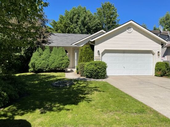 Welcome to the Coeur d' Alene Place Home, a charming 2-bedroom, 1.5-bathroom residence located in the heart of Coeur d' Alene! This home is equipped with modern amenities such as A/C, a refrigerator, a dishwasher, and a gas stove. The double car garage provides ample space for your vehicles or storage needs. The interior boasts wood laminate flooring, adding a touch of elegance to the home. The master bedroom is a true retreat, complete with an en-suite bathroom and a spacious walk-in closet. The home also features a convenient laundry room with hookups and an additional half bath. Outside, you'll find a covered front porch, a backyard patio, and a garden shed, perfect for outdoor relaxation or gardening hobbies. The property is also equipped with front and back sprinklers. A set $150.00 per month covers water, sewer, and garbage services. Experience the comfort and convenience of the Coeur d' Alene Place Home today.