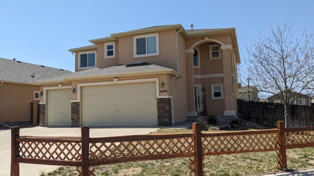 Welcome to this beautiful modern 4 bedroom, 3 bathroom home in the Lorson Ranch community! This spacious house features a gas fireplace, fenced backyard, and a 3-car garage, with plenty of room for parking and storage. Enjoy the convenience of central A/C and the luxury of a walk-in closets in the bedrooms. The kitchen is equipped with a wine refrigerator, slab granite counters, stainless steel appliances and a corner pantry, perfect for entertaining guests. The main floor features tile and wood flooring while the upstairs is all carpeted. The upstairs holds the 4 bedrooms, each with it's own walk-in closet. The master bedroom has amazing views, a 5-piece bathroom with a soaking tub. The second bathroom has double sinks and vanities, granite countertops and a private shower. The laundry space is also upstairs ready for your washer and dryer. There is a large unfinished basement for additional storage as well. Don't miss out on the opportunity to make this stunning house your new home! This home is very close to Military Bases, schools and shopping. The neighborhood has multiple parks and walking trails.