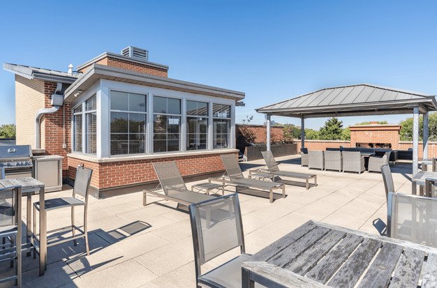 The Dennison and Sanborn have a one-of-a-kind Rooftop Experience with an amazing view of the City skyline; covered seating, a built-in grill, lounge chairs, and a fireplace that is open year-round. In the attached garage, you will have a 24/7 reserved spot.