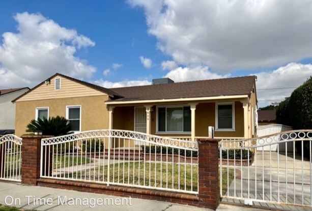 3 bedroom, 2 Bath home with a fenced front yard and large backyard! - Stop the car, this lovely 3 bedroom home is ready for you! From first sight, you are greeted with a beautiful fenced yard, a lovely porch, and as you enter the home, you are walking into the Living Room and you are greeted with lots of windows with shutters and a door that leads to the large backyard. The dining room is off the galley kitchen which has a stove, and dishwasher and there are laundry hook ups near the exit door. On the other side, you will find 2 nice sized bedrooms that share a bathroom with a tub and separate shower, and great hallway cupboards for extra storage. The Primary Suite is HUGE and has a separate closet area and a large tub and separate shower. You will enjoy a long driveway, with a 2 car detached garage. The large backyard is perfect for gatherings and entertaining. Conveniently located to several freeways, downtown LA and the Coast, you will find that this home is for you. The gardening is paid for, and the owner pays for the first $50 of the water bill so that you can water the lovely grass! Make your appointment today, 562-433-4700, or text 562-552-4686. CaDRE#01961007