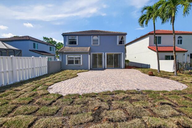 The home sits on one of the largest lots in the neighborhood, providing a private backyard with new landscaping, tall privacy hedges, and a spacious brick-paver patio—perfect for relaxing or entertaining. Additional features include accordion shutters and a hurricane-rated garage door for added peace of mind. A community pool is located nearby, and the HOA approval process is simple with a background check only and no credit score requirement.