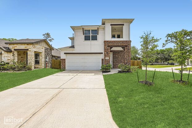 The home boasts a modern brick and cement exterior, complemented by a welcoming porch. The open-concept design seamlessly connects the living room, dining area, and kitchen, creating an ideal space for both relaxation and entertaining. The kitchen is equipped with abundant cabinetry, and generous counter space, catering to both everyday meals and special gatherings. The master suite features an ensuite bathroom with double sinks, a walk-in shower, and a spacious walk-in closet. Two additional bedrooms share a well-appointed full bathroom. A convenient half-bath serves guests, and the laundry area is discreetly located to enhance functionality.