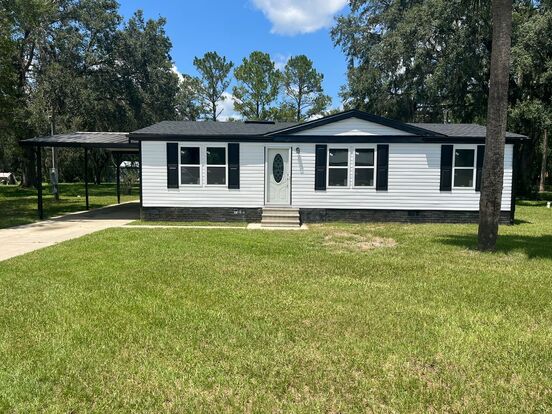 Welcome to the 3/2/1 on over 1/2 Acre, a beautifully renovated manufactured-home nestled in the private neighborhood of Crystal River, FL. This property boasts three spacious bedrooms and two full bathrooms, offering ample space for comfort and relaxation. The split bedroom plan ensures privacy, making it an ideal choice for those who value personal space. The house also features a convenient indoor laundry room, adding to the ease of everyday living. Set on over half an acre, this property provides plenty of outdoor space for recreation. The enclosed back patio provides for additional storage and great catch-all area. With its recent renovations and thoughtful amenities, this home is ready to offer a comfortable and convenient lifestyle.