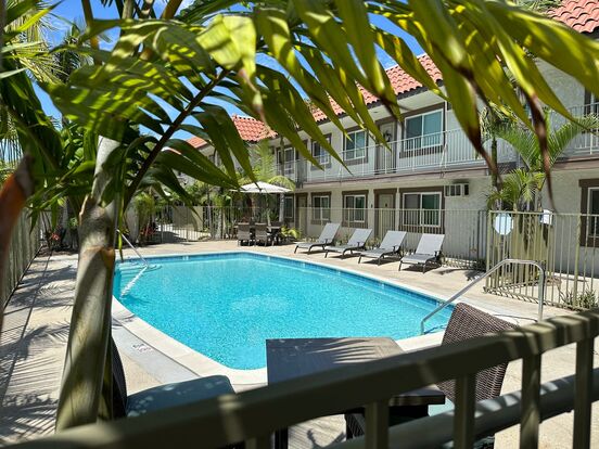 This lovely apartment home is located at the end of a cul-de-sac on a street comprised of single family homes, making it relatively easy for guests to park. Just across the street is a beautiful park and sports complex--close enough without being too close. Schools and shops are also located just down the street. Enjoy cooling off in the private pool on those hot California days!