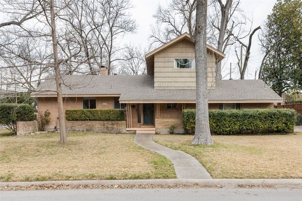 Mid Century Charmer - 3 bedroom, 2 bath home nestled in Lochwood, surrounded by towering mature trees. Two open concept large living areas featuring a decorative fireplace . The main living and primary bedroom overlook the open patio & courtyard which makes it perfect for entertaining and peaceful area to relax. Don't miss the backyard to the rear of the home. Two spacious bedrooms & bath upstairs. Within minutes to White Rock Lake, hike & bike trails, Casa Linda Shopping Center & so much more. Rare find.