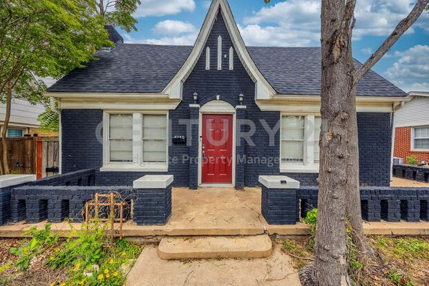 This beautifully maintained property offers a unique opportunity with two fully equipped residences on a single lot. The main home features 2 bedrooms and 1 bathroom, showcasing a coffered ceiling in the dining room, a decorative fireplace, and a vaulted ceiling that enhances the living room. The kitchen is updated with stainless steel appliances, providing both functionality and style. A dedicated laundry area with washer & dryer hookup adds convenience in the main home. The detached accessory dwelling unit (ADU) mirrors the main house with 2 bedrooms and 1 bathroom, along with its own full kitchen equipped with stainless steel appliances. This setup is ideal for accommodating guests or extended family. Refrigerator and stacked washer & dryer included in both homes. Situated on a 6,200 sqft lot, the property includes a garage, used for storage only, and additional parking space. Located in the desirable Sunset View neighborhood, it's just minutes from Bishop Arts, downtown Dallas, and major highways. This versatile property is a rare find in a sought-after area. No pets please. 12 month lease term only.