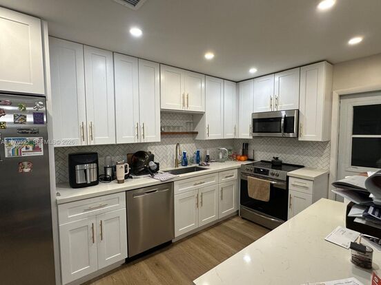 Absolutely stunning 3-bedroom, 2-bath home beautifully remodeled with high-quality finishes throughout. The open-concept kitchen features quartz countertops and stainless steel appliances, seamlessly flowing into the main living areas for a bright and functional layout. Laminate flooring runs throughout the home, and both bathrooms have been tastefully updated with clean, modern finishes. Enjoy a spacious backyard with a mature mango tree, offering plenty of room to relax or entertain. Ideally located in the heart of Dania Beach, just minutes from shops, restaurants, beaches, major highways, and Fort Lauderdale Airport.