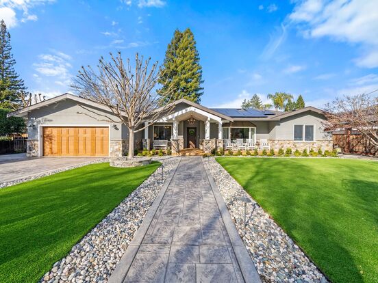 Spacious and welcoming floorplan with 4 bedrooms, office & 3.5 bathrooms. Remodeled throughout with interior & exterior space for indoor-outdoor lifestyle & entertaining! Spacious kitchen with substantial island featuring granite countertops & stainless steel appliances. Living room features a gas burning fireplace & built-ins. Primary bedroom with beautiful tiled gas burning fireplace and luxurious primary bathroom that includes double vanities, relaxing soaking tub & walk-in closet. One of the secondary bedrooms is equipped with kitchenette, and ensuite bath, perfect for an Au Pair, In-law or guests! Expansive resort-style backyard complete with pool, built-in barbecue, lawn, fire pit and various seating areas. This outdoor oasis is perfect for entertaining!
