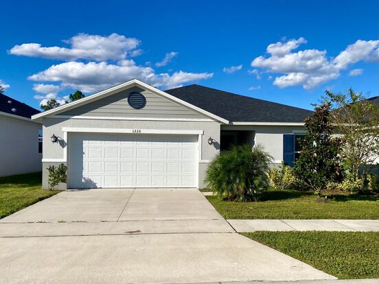 Welcome home to 1226 Augustus Drive! This is a four bedroom, two bath single family home located in Tivoli Reserve in Davenport. As you enter the home, you are welcomed into the spacious entryway. Enjoy plenty of natural light in your living area, overlooking the kitchen, with multiple windows and the sliding glass doors leading to the backyard. The kitchen is fully equipped with a full suite of appliances including the refrigerator, range, over the range microwave as well as plenty of cabinetry and counter top space. The three additional bedrooms are spacious, featuring ceiling fans, reach in closets and easy access to the full bath with a shower tub combo. The master suite features beautiful tray ceilings, a walk in closet and private access to the master bath with dual sinks, a standing glass enclosed shower and linen closet. Rounding out this home is the large two car garage, interior laundry to accommodate full sized washer and dryer, covered backyard patio with beautiful view of the conservation area and no rear neighbors, Wi-Fi enabled Smart Thermostat and state of the art heating and cooling that is Energy Star Certified. The state of the art features do not end there - the high efficiency smart tank electric water heater allows you to manage hot water, track yearly usage and manage heating schedule from your mobile device. Enjoy plenty of privacy, particularly on your covered patio. The conservation area and retention pond may provide a habitat for animals native to the area. Enjoy the community pool, cabana and tot lot. This home will not last long!