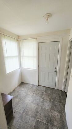 Cozy enclosed front porch—perfect for morning coffee