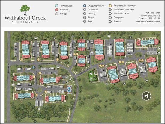 Nestled in the country-like setting of Dexter, Walkabout Creek is located just minutes away from Ann Arbor. Discover spacious 1, 2, and 3 bedroom townhomes and apartments, all with private entrances, washer/dryer, and garage. Experience the charm of downtown Dexter, visiting the local bakery, pizzeria and farmers market. Live the life you've always wanted at Walkabout Creek! Proud Sponsor of Dexter Summer Festival!