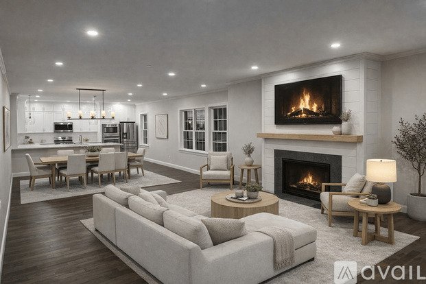Hello and welcome to this Brand new stunning 2/3 bedroom condo, modern luxury and thoughtful design throughout. The open-concept layout features high-end finishes and hardwood floors throughout. The bright white kitchen with quartz countertops, stainless steel appliances, and ample cabinetry flows into the spacious living area, highlighted by a cozy gas fireplace with custom shiplap detailing. A generous home office offers an ideal space for remote work. This upscale condo includes 2/3 bedrooms, including a spacious primary suite with a spa-inspired bathroom and a walk-in closets. The property includes a 1 car garage and a seperate bike storage room that is perfectly located next to the Village Green, providing the perfect spot for relaxation. located near highways, shopping, and dining. Experience elevated living in this beautifully designed home schedule your tour today! Note this unit is not furnished