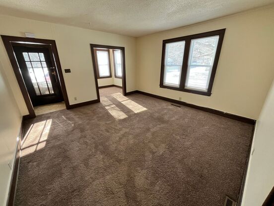 2 story duplex with 3 bedrooms, 1 bathroom. All bedrooms and bath on the upper level. Big living room dining room combination. Large kitchen. Basement for storage and has laundry hook ups. Gas heat.