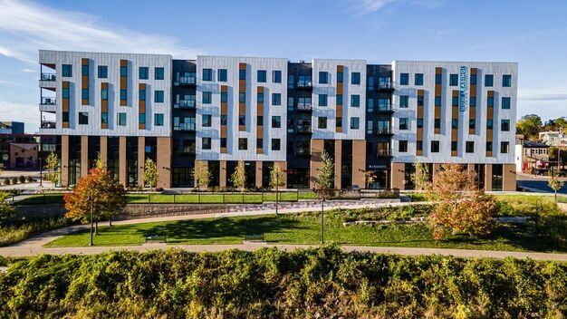 Andante is a 5-story mixed-use development located at 100 N. Farwell Street, in the heart of downtown Eau Claire. The project includes 76 residential units, including furnished studios, one-bedroom units, and two-bedroom units. The first floor of the building includes over 8,000 leasable square feet of commercial space.