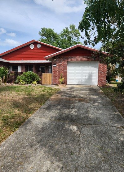 Charming and well-maintained 2BR/2BA duplex located in Shangri La Village in Edgewater. This clean and comfortable home offers a functional layout, a screened porch perfect for relaxing, and a 1-car garage for added convenience. While the interior is a bit dated, it has been thoughtfully cared for and is move-in ready. Great location close to shopping, dining, and the river! 1 small pet welcome. 1st months rent, security deposit and lease fee $75 required to move in.