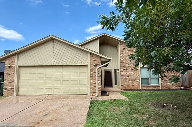 Welcome home to this spacious 1,906 sf, 3 bed, 2 bath home in Ripple Creek, in Edmond. New flooring throughout the home! The family room features a vaulted ceiling, a wet bar, and a wood-burning fireplace with built-in cabinetry - perfect for enjoying cozy fall evenings. The kitchen has granite countertops, plenty of storage, a glass-top range, dishwasher, stainless steel sinks, a garbage disposal, and a water line for your refrigerator. The kitchen opens into a dining area with french doors that lead to the covered patio and back yard with privacy fencing. The split bedroom floorplan in this home allows for privacy and relaxation. The primary bedroom has an ensuite bathroom and a large walk-in closet, while the secondary bedrooms and bathroom have lots of light, and great storage. This home also offers a full 2-car garage and a beautiful, mature tree in the front yard. Visit www.mimoforrent.com and schedule a showing today!
