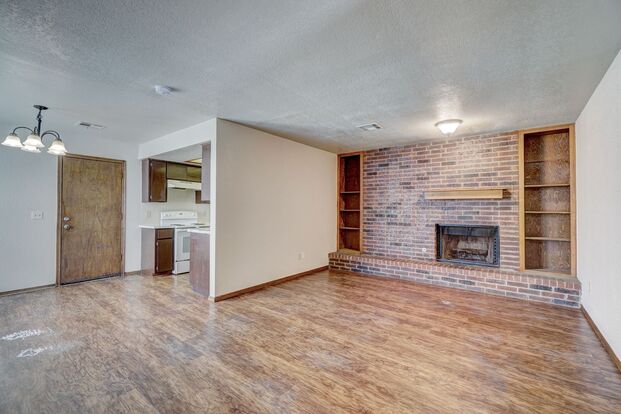This charming duplex offers comfort and convenience, complete with essential appliances including a refrigerator, stove, oven, dishwasher, and garbage disposal. The inviting living room features a cozy fireplace perfect for relaxing evenings while built-in bookcases add both character and practical storage.