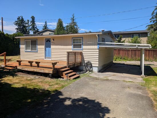 AVAILABLE NOW. Cute 2 bedroom, 1 bathroom rambler with large deck down a private road off 76th Ave W and within walking distance to Lake Ballinger. Open living room with new laminate floors; Galley kitchen with range oven & refrigerator. Full bath with newer stacked washer/dryer. Attached oversized 1 car carport plus driveway parking for 2-3 vehicles. Large level yard. Conveniently located within minutes to Mountlake Terrace Transit & Link Lightrail stations, Busline,