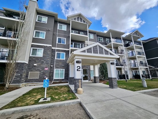 Welcome Home! This luxury 2 bed, 2 bath apartment in Aspen Trails, Sherwood Park offers a spacious and functional layout perfect for both entertaining and relaxing. The open-concept living area provides ample space for family and friends, flowing into a modern kitchen with a large island, generous counter space, and plenty of storage. On either side of the living space, you'll find two well-sized bedrooms, including a beautiful retreat with a walk-in closet and private ensuite, plus a versatile second bedroom ideal for guests or a home office. Enjoy a great-sized balcony for year-round outdoor space. Condominium has a gym. Two outdoor parking stalls included. All appliances are included. Heat and water are covered tenant pays electricity. Prime location close to shopping, schools, walking paths, and more. Pets allowed with owner approval. Courtesy of Realty Focus.