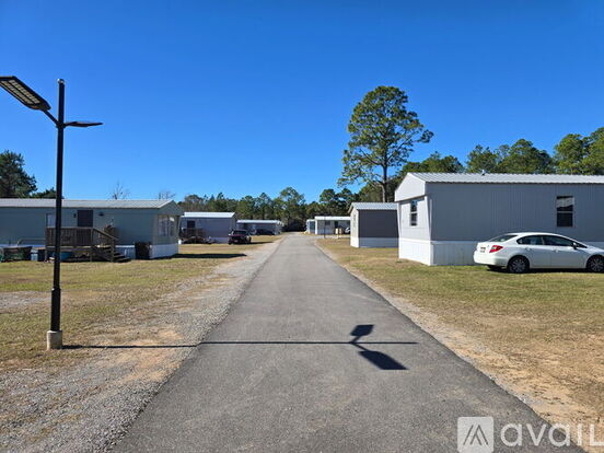 Lot #10 is a single-wide home located at the end of the street, offering added privacy, with a wooden fence at the entrance. The lots enjoy treed shade.