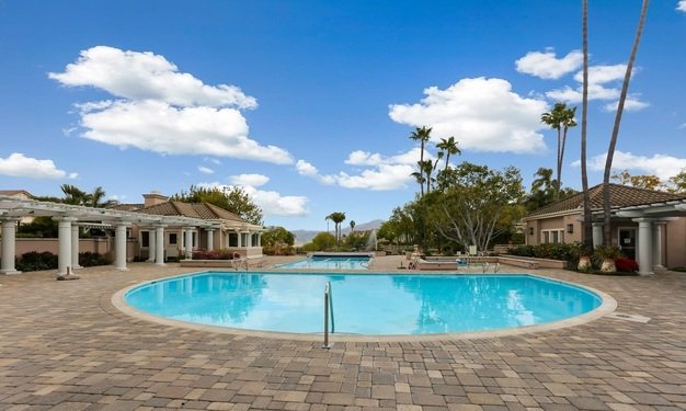Come live your best life in this beautiful one bedroom one bath unit, quiet location close to the Morada pool and spa. As you enter you will gaze upon a light and bright open floor plan adorned by new vinyl plank flooring and large windows that bathe the interior in natural light. The living room enjoys vaulted ceilings, a cozy fireplace and access to a serene balcony. The kitchen has been upgraded to feature granite countertops, stainless steel appliances, an eat-at counter, recessed lighting and provides plenty of cabinet space to store all your culinary tools. The primary bedroom has vaulted ceilings, access to the balcony and a walk-in closet.