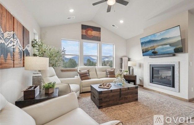 3 bedroom, 2 bathroom condo available for rent. Front row views of Rocky Mountain National Park set the stage for this spacious three-bedroom condo in Estes Park’s workforce housing program. Perched on the top floor, this home offers sweeping, unobstructed vistas of the Lumpy Ridge Mountain Range to the north and the Twin Sisters Mountain Range to the south, with mountain beauty visible from every room. The living and dining rooms share a cozy two-sided fireplace, while the dining room opens to a private balcony ideal for outdoor dining or quiet relaxation. A chef-worthy kitchen provides mountain views from the sink, making everyday tasks a delight. The primary retreat includes a walk-in closet and en-suite bath, while two additional bedrooms provide comfortable space for family or guests. An expanded laundry room adds additional space and includes a stackable washer and dryer. Recent upgrades include central air conditioning, a barn door for the primary suite, a glass shower door in the primary bath, and enhanced single stall garage with storage and upgraded flooring as well as an additional storage cage. Easy-maintenance LVP flooring runs throughout the living spaces, blending style with practicality. This quiet community offers unmatched convenience, with Lake Estes just steps away for fishing, paddle boarding, kayaking, and scenic hikes, while downtown Estes Park’s shops, dining, and entertainment are just a short stroll away. $2,600 a month plus utilities, 12 month minimum. Buyers must work 30 or more hours per week within the Estes Valley R3 School District boundaries. DM for additional details.