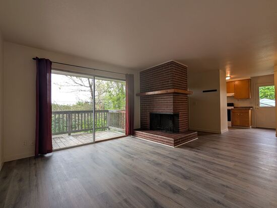 This spacious 2-bedroom, 1-bath duplex features solid surface floors throughout and amazing views from upper deck areas in the front and back of home. The living room provides a nice cozy fireplace, a slider to the front deck and is open to the dining area. The nice kitchen provides ample storage and easy access to the laundry area and back door. The main bedroom provides a large closet and a slider to the back covered deck. The property has a large array of landscaping with various mature plants.