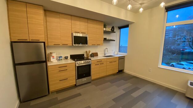 In-Unit Laundry: Includes a stackable washer and dryer for convenience.