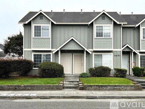 Two bedroom, one bathroom and one half-bathroom with off-street parking. Townhouse style apartment with Large living room, open kitchen with all appliances including dishwasher/garbage disposal, plenty of cabinet space, half-bathroom and small fully fenced patio complete the downstairs. Upstairs are two large bedrooms with oversize closets, laundry closet with hook-ups for stackable unit, spacious bathroom with tub shower and vanity storage. Newer paint, flooring, window coverings, fixtures. On site coin-op laundry. Located close to shopping, restaurants and Highway 101. Garbage paid. No smoking and no pets