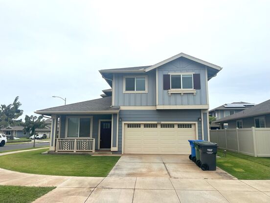 Come visit this lovely 4 bedroom 2.5 bath single family home which is located across from the Hoopili Park. This 8 year young home has 2 living areas, vinyl plank floors, split AC throughout the home, gas stove and water heater, washer/dryer, dishwasher, refrigerator, private yard, 2 car garage plus driveway, and is a corner unit. Unit is available now for showings and occupancy. Hoopili is one of the newest developments on island and is still growing. Development has access to rail stations, parks, pool and rec center. Rent includes trash pickup and yard service. Tenant is responsible for gas, electric, and water/sewer. $20 per applicant 18 years and older. Tenant is required to have renter's insurance.
