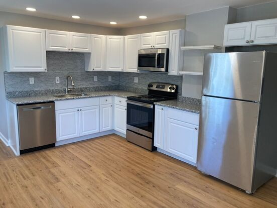 This renovated 2-bedroom townhouse apartment has modern finishes that include granite countertops, stainless steel appliances (fridge, stove, dishwasher, and built-in microwave), bright cabinets and countertops with a backsplash, recessed lighting, vinyl plank flooring, new bathroom fixtures, and in-unit laundry. The home is air conditioned and heated via a forced air HVAC system run on natural gas. The apartment totals 1000 finished SF and, in addition to two bedrooms, includes an additional upstairs room that could serve as an office, nursery, or multi-purpose room. ?
