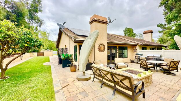 Beautifully upgraded & remodeled home in the desirable Pala Mesa Fairway Villas HOA Community of Fallbrook. Minutes to 76-Fwy and I-15 corridor, as well as Bonsall or Fallbrook. Two Community Pools, Lovely Green Belt & Walking paths along the Pala Mesa Golf Course, and this home has its very own private gate and back entrance to one of the community paths that leads you just a short distance to one of the more secluded and private of the two community pools! Enjoy days and evenings in the tranquil setting of the large back yard which is hardscaped with pavers and stone and has a large natural gas fire pit and integrated landscape lighting.