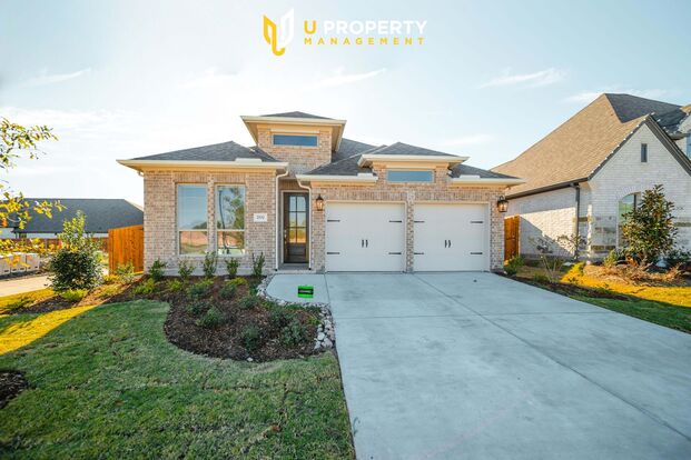 Sweet House in Fate within Rockwall ISD. A relatively unique floor plan within the community. Conner lot! With a 12-foot ceiling and wall windows providing abundant natural light. The open kitchen offers a center island and a spacious pantry. Dining area flows into open family room with a wall of windows. 4 bedrooms and 3 full bathrooms! The secluded primary suite includes a primary bath with dual vanities, a garden tub, a separate glass-enclosed shower, and a large walk-in closet. Abundant closet space in the secondary bedrooms. Covered backyard patio. Mud room off the two-car garage.