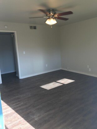 This is a spacious two bedroom one bath apartment that has about 750 square feet and lives large! It is on the downstairs level and opens up to our beautiful courtyard!